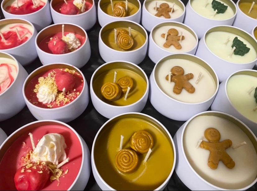 Each soy candle is eco-friendly and made with GMO free soy beans. Soy candles burn cleaner with less soot and burn longer than traditional paraffin candles. Soy candles are also very easy to clean up with soap and water if spilled. The candle tins may be cleaned out and either recycled or reused after the candle has completely burned out.